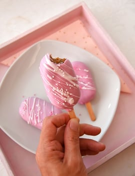 Die Cakesicles sind ab einer Bestellmenge von 10 Stück erhältlich und kosten 5.50 CHF pro Stück. Für einen Aufpreis von 0.50 CHF verpacken wir dir gerne deine Cakesicles einzeln in einem Flachbeutel mit Band.