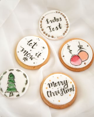 Passend zu Ihrem Logo oder Event kreieren wir Ihre Cookies. Von Pastell bis hin zu kräftigen Farbtönen mischen und verzieren wir die Cookies in ihrem Wunschfarbton. Farbeffekte erreichen wir durch's Kombinieren mehrerer Farben, Puder und essbaren Lacken.